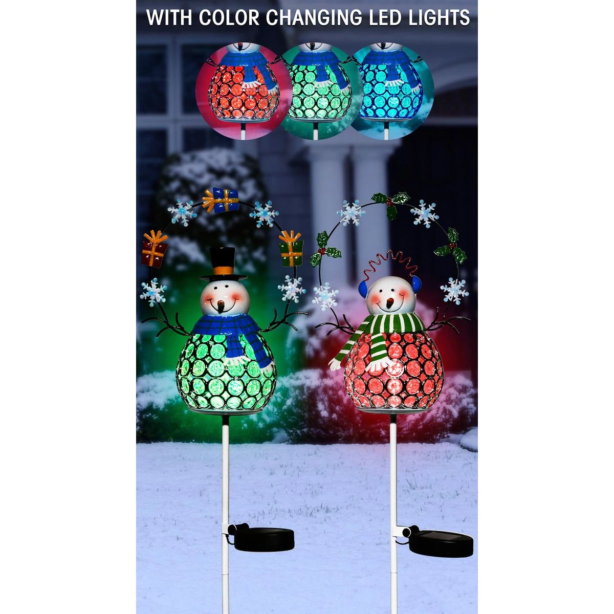 - FESTIVE OUTDOOR DECOR: Jolly snowman is illuminated by color changing LED lights to create a joyous accent day and night
