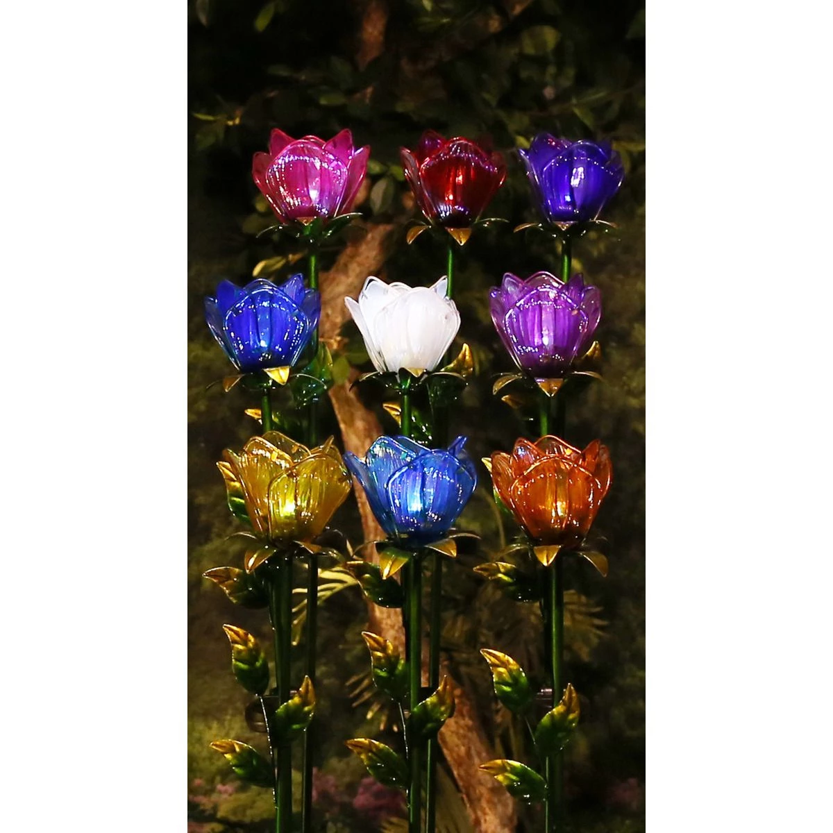 - Elegant glass rose is illuminated by a white LED light to create a beautiful accent day and night