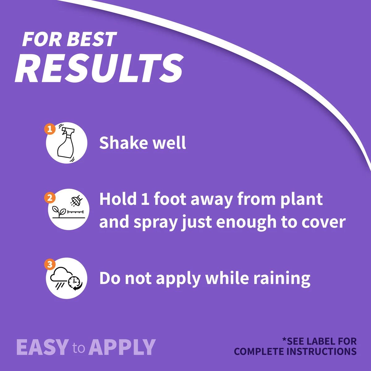 Controls over 130 different insect pests on vegetables, roses, flowers, lawns, shrubs, trees, and over 60 varieties of ornamentals. Kills on contact. This product is conveniently ready to use when it arrives. The spray nozzle makes this product easy to deploy.