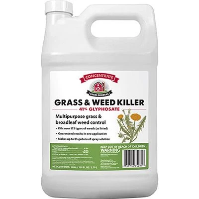 Get to the root and kill grass and weeds with Farm General 41-percent Glyphosate Concentrate Grass and Weed Killer. Use for lawn or garden replacement, on patios, walkways, or in and around fences and gardens to remove unwanted grass and weeds. Visible results in as little as 2 to 4 days. Kills all grass and weeds.