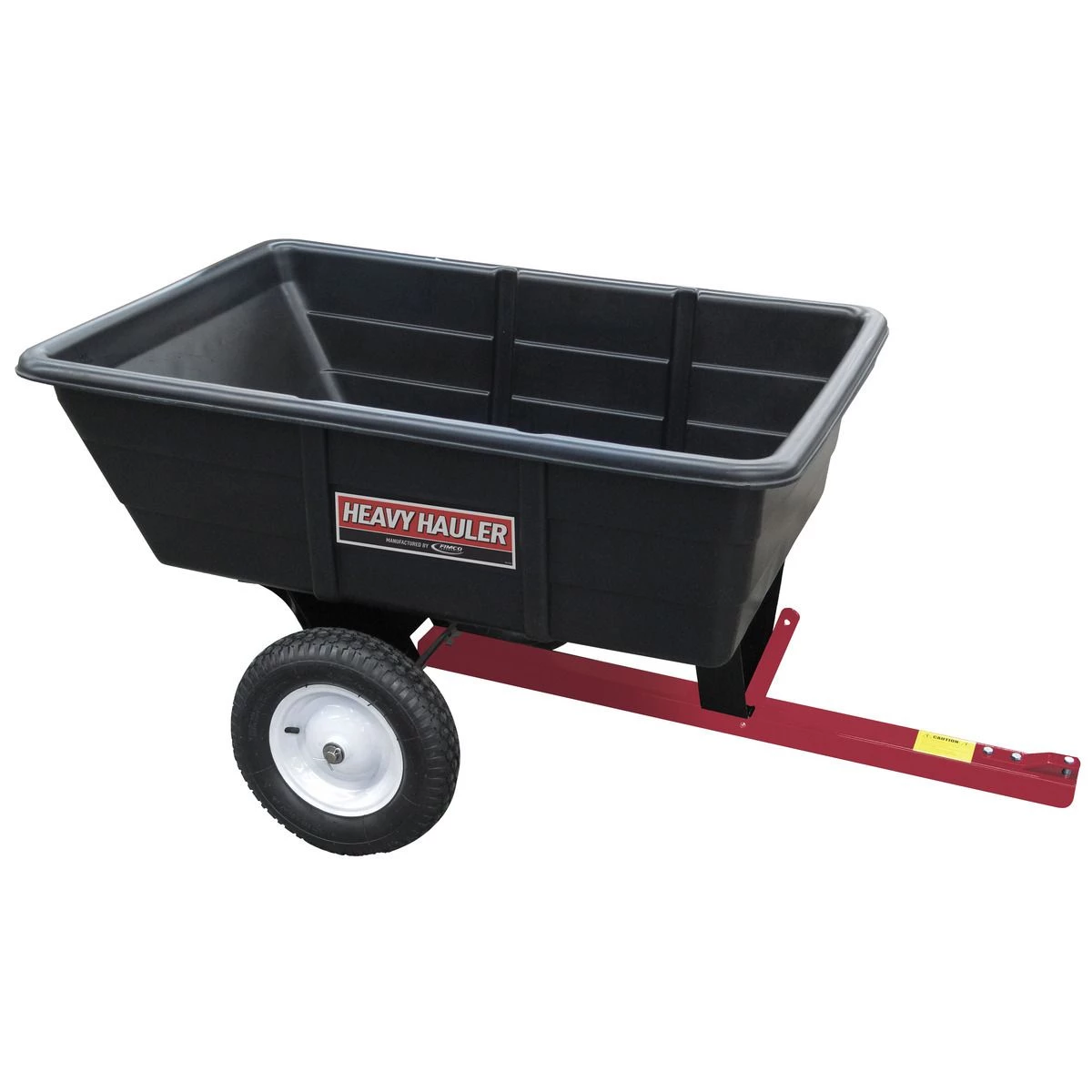 The FIMCO 10 Cubic Foot Trailer Cart easily maneuvers materials around the lawn, garden and farm. Built on a rigid steel frame the durable, easy to clean poly tub features a spring loaded latch to release and unload cart, pneumatic metal hub tires and reinforced hitch. Designed to haul up to 600 pounds the Poly Trailer Cart can handle hauling heavy earth, plants, mulch and gravel.