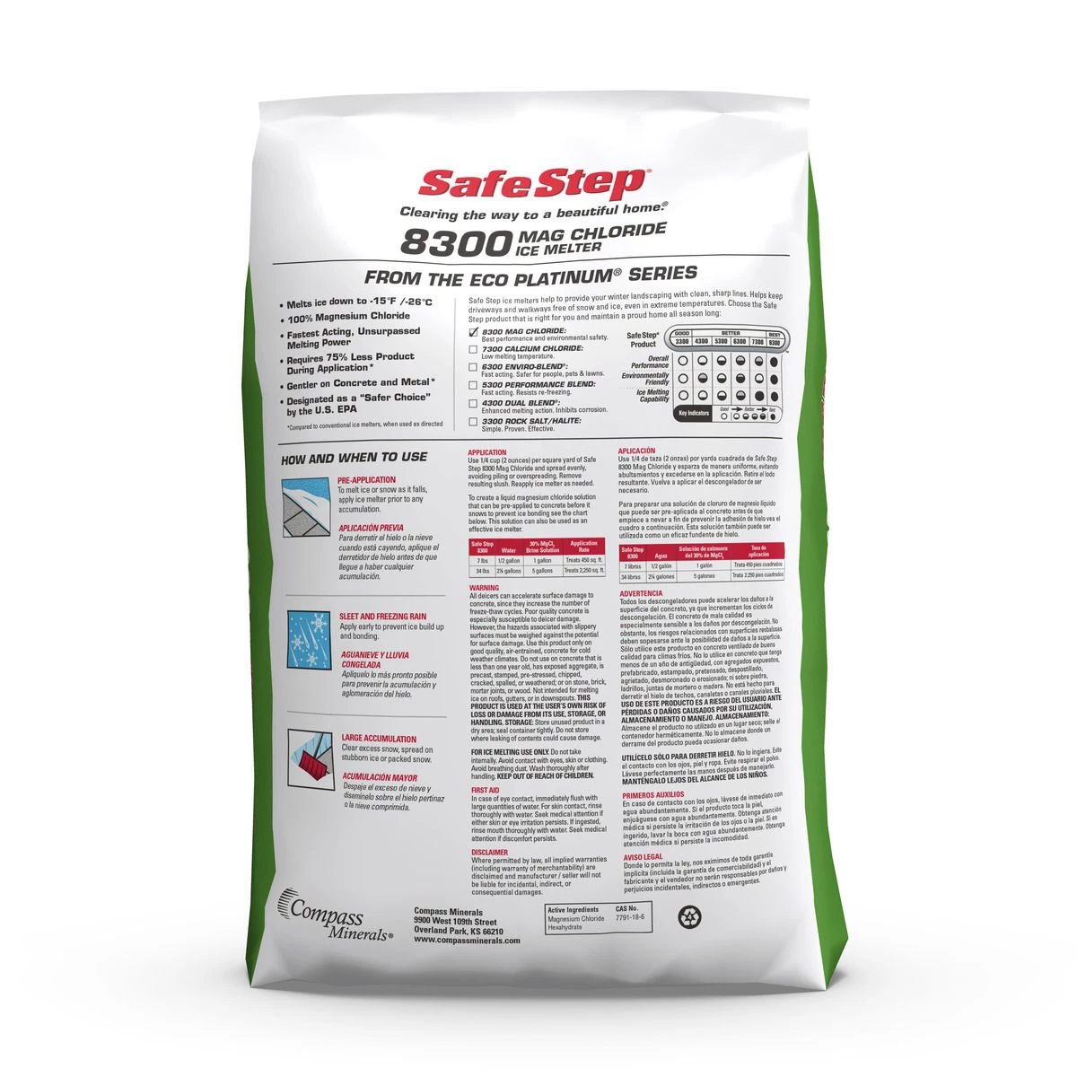Safe Step Mag Chloride 8300 is one of the fastest-acting premium ice melters on the market. Made from 100% magnesium chloride hexahydrate, it works in extremely cold temperatures while also being gentler on vegetation and concrete.