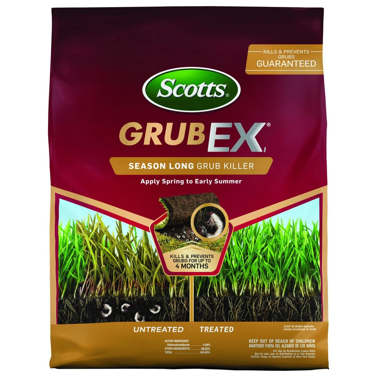 Prevent grubs from damaging your lawn with Scotts GrubEx1 Season Long Grub Killer. A single application can stop and prevent grubs all season long. Apply during spring or early summer to kill grubs as they develop. Using Scotts GrubEx1 Season Long Grub help control Japanese beetle infestations. Easily apply with a Scotts broadcast, drop, handheld, or Wizz spreader and stop grubs before they damage your lawn.